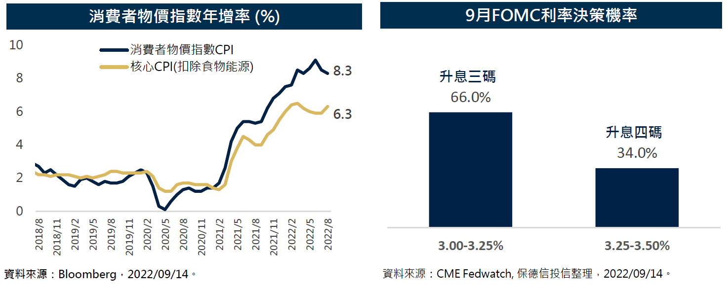 美國8月消費者物價指數(CPI)數據顯示,分別月增0.1%與年增8.3%,高於市場預期,過去四個交易日的市場反彈立刻逢高遭到拋售,顯示投資人信心不足。道瓊指數下跌3.9%收31104.97點,標普500指數下跌4.3%收3932.69點,Nasdaq指數則下跌5.2%,收11633.57點;美國十年期公債殖利率則是持續反映升息趨勢,上升至3.41%位置。