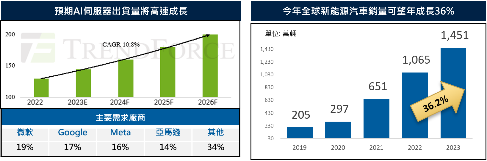 資料來源:左圖: TrendForce, 2023/3/8,保德信投信整理;右圖: TrendForce, 2023/2/21,保德信投信整理。