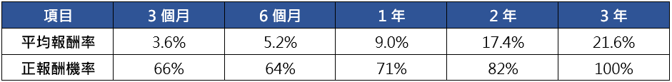 統計2014年以來當基礎建設類股的本益比低於10年均值超過一個標準差時進場持有,不論是投資3個月、6個月、1年、2年、3年,勝率都在6成以上,而且持有時間越長,正報酬機率越高,平均報酬率也同步隨著時間增加。數據顯示,若在上述條件之下持有1年,正報酬機率上升至7成,平均報酬可達9%,若是持有2年,正報酬機率再提升至逾8成,平均報酬也同步成長至17.4%,假若持有3年,正報酬機率甚至達百分百,平均報酬也一舉突破兩成。(資料來源:Bloomberg,保德信整理,2024/05)