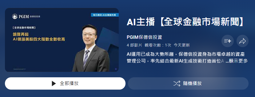 AI運用已成為大勢所趨,保德信率先結合最新AI生成技術打造首位AI主播「Ryan」,不僅為台灣投信產業第一家運用AI主播技術的基金公司,利用人工智慧技術來模仿真人主播進行播報的創新應用,也希望透過新興科技優勢,提供投資人更即時的市場資訊服務與嶄新的服務體驗。