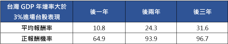 PGIM保德信臺灣市值動能50ETF基金(本基金之配息來源可能為收益平準金)擬任經理人張芷菱表示,台經院預測今年台灣GDP將逐季成長,全年年增達3.15%,預期在經濟穩健成長之下,可望帶動台股市值再創新高,數據亦顯示,每逢台灣GDP年成長率高於3%進場投資台股,持有1年的平均報酬率為10.8%,後2年為24.3%,若持有3年平均報酬率甚至可達31.6%之多,勝率也從6成上升至超過9成。(資料來源:Bloomberg、保德信,2024/12,投資人因不同時間進場,將有不同之投資績效,過去之績效亦不代表未來績效之保證。)