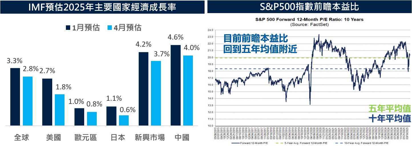 資料來源:(左圖) IMF世界經濟展望,2025/04;(右圖)FactSet,保德信整理,2025/05/09。