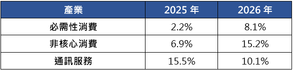 隨著經濟穩定擴張,三大消費亮點出線!在全球消費結構持續升級的帶動下,數位消費、體驗服務與必需性消費將帶動三大消費概念產業獲利進入高速成長的黃金階段,其中又以數位消費相關的通訊服務的獲利年增幅最為亮眼。(資料來源:Goldman Sachs Global Investment Research,保德信,2025/05/19)