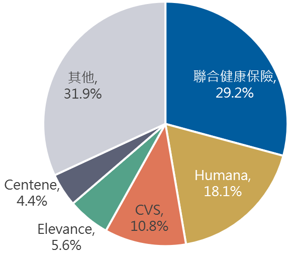 其中參與該計劃的保險公司又以美國保險龍頭企業聯合健康保險拿下最高約達近3成的市占比,其次則為Humana拿下近2成的市占。