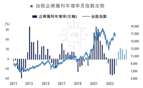 台股第四季企業獲利年增率不僅可望轉正,成長幅度更有機會超過2成,有助支撐台股重回上漲格局。