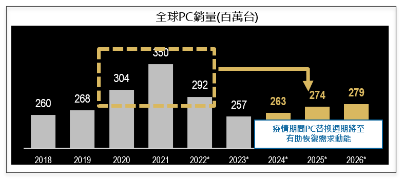 在AI電腦的銷售動能方面,通常個人電腦的更換週期為3~4年,尤其又以企業需求更為顯著,如果以先前企業為因應疫情WFH的需求,所帶動的2020~2021年大量PC需求潮來估算,市場樂觀預期今年電腦市場相當有機會迎接由企業機種更新而帶動的換機潮動能,再加上微軟已宣布其WIN 10系統將在明年10月終止服務,這都將大幅度地推升客戶換機率,進一步激勵搭載AI作業系統的個人電腦出貨大放量。.