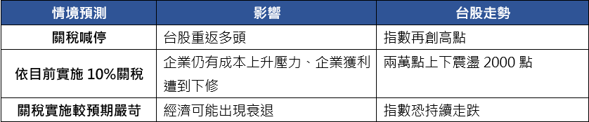 受惠於美股大漲激勵,台股昨日(4/23)強彈845.71點,大漲4.5%,指數收在19639.14點,近期市場受到聯準會、川普政策等因素影響,震盪幅度加劇,一日的漲跌尚無法完全定義盤勢未來的表現,但目前可以從三大情境模擬台股今年的表現。(資料來源:Bloomberg,2025/04/23)