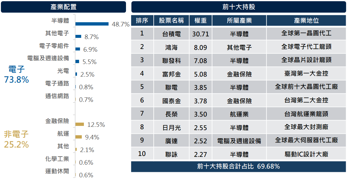 本次換股方向主要調升的產業包括航運、半導體、消費性電子等,調降產業則有通信網路、AI中下游零組件、伺服器組裝等。除了成長性明確的核心AI持股外,進入除權息旺季,也配置具殖利率概念、評價較低的消費性電子股、金融、以及航運類股。