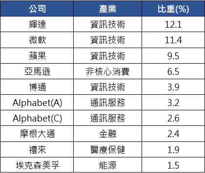 009810前十大成分股包括輝達(12.1%)、微軟(11.4%)、蘋果(9.5%)、亞馬遜(6.5%)、博通(3.9%)、Alphabet(A)(3.2%)、Alphabet(C)(2.6%)、摩根大通(2.4%)、禮來(1.9%)、埃克森美孚(1.5%),國家布局分布以北美77.7%為主,歐洲14.5%第二,新興市場配置1.2%,現金與其他約6.6%。(資料來源:保德信,2025/07/14)